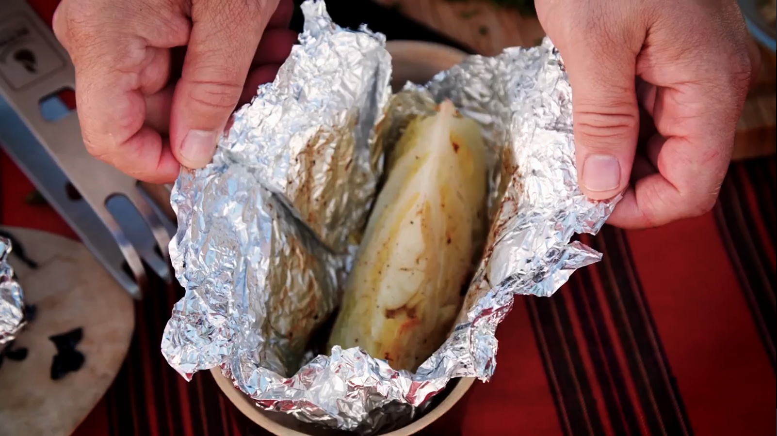 Kawałki posolić, popieprzyć, natrzeć wyciśniętym czosnkiem. Posmarować masłem z obu stron, a następnie zawinąć pojedynczo w kawałki folii aluminiowej, kierując miejsce złączenia ku górze, by zapobiec wyciekowi masła.
