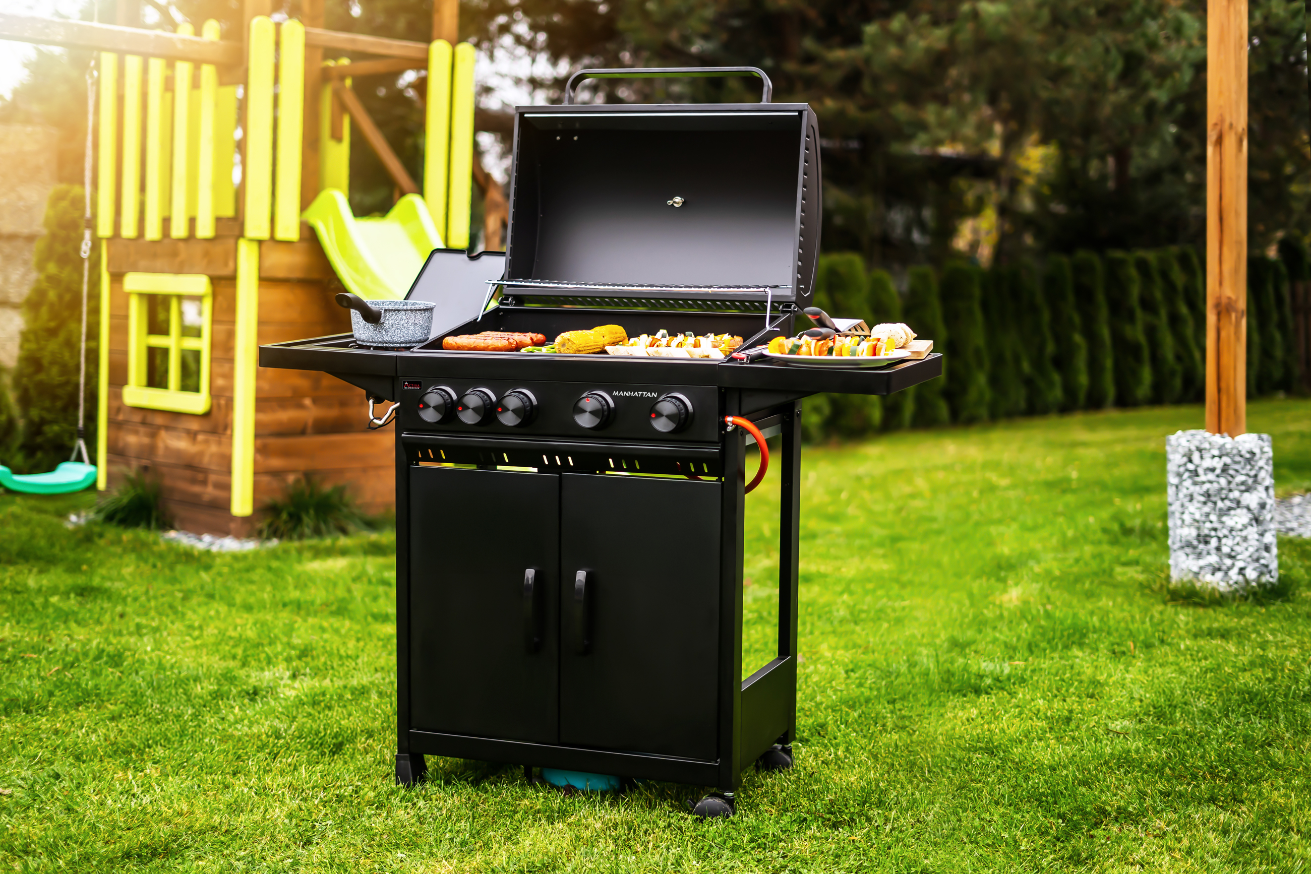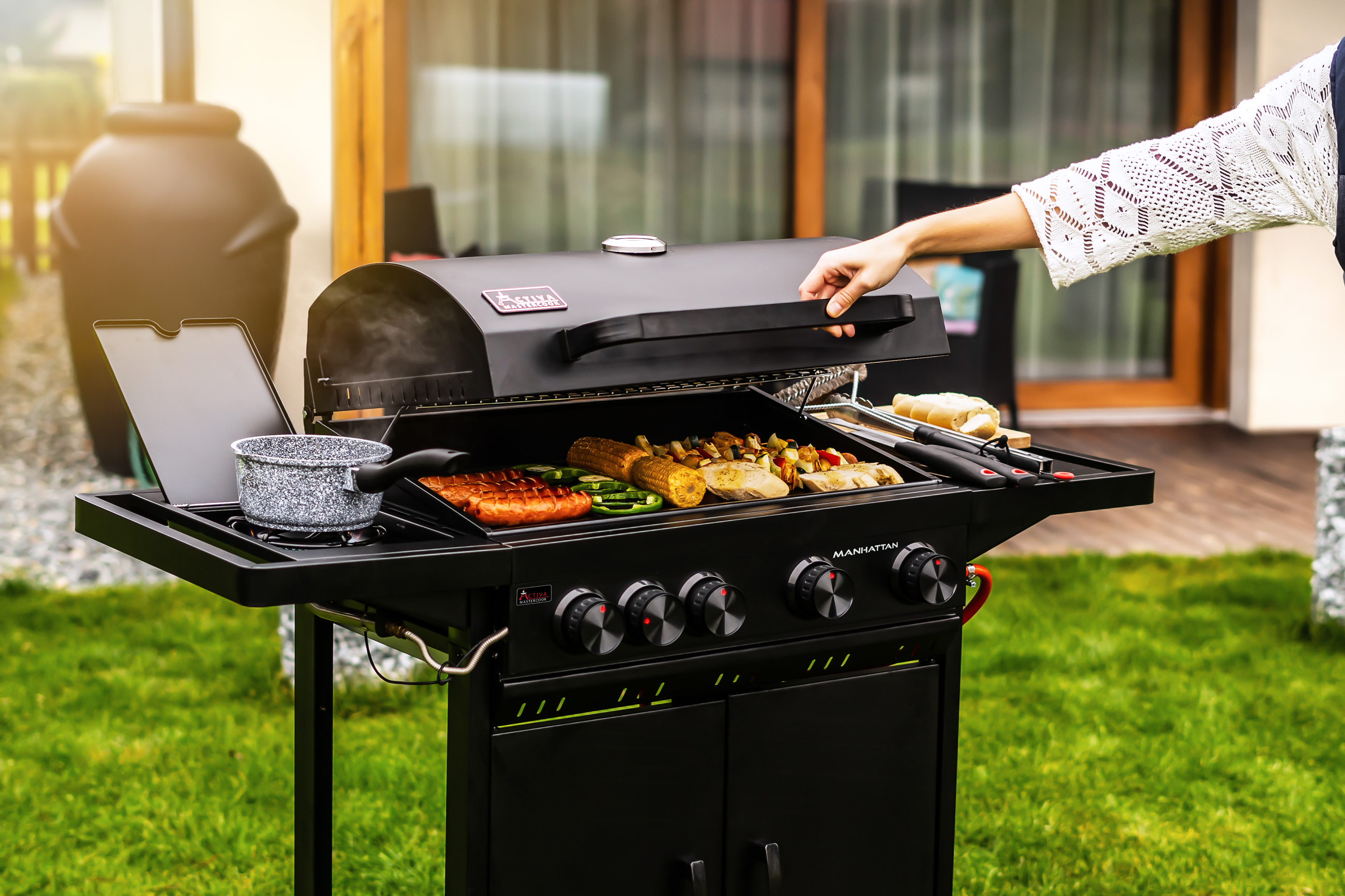 Dwie przestronne powierzchnie robocze idealnie sprawdzą się podczas przygotowania potraw, a dodatkowy palnik boczny z praktyczną klapką jeszcze bardziej zwiększa dostępną przestrzeń. Grill MANHATTAN został wyposażony w zamykaną szafkę dolną oraz haki na akcesoria, dzięki czemu wszystko, czego potrzebujesz do grillowania, masz zawsze pod ręką.