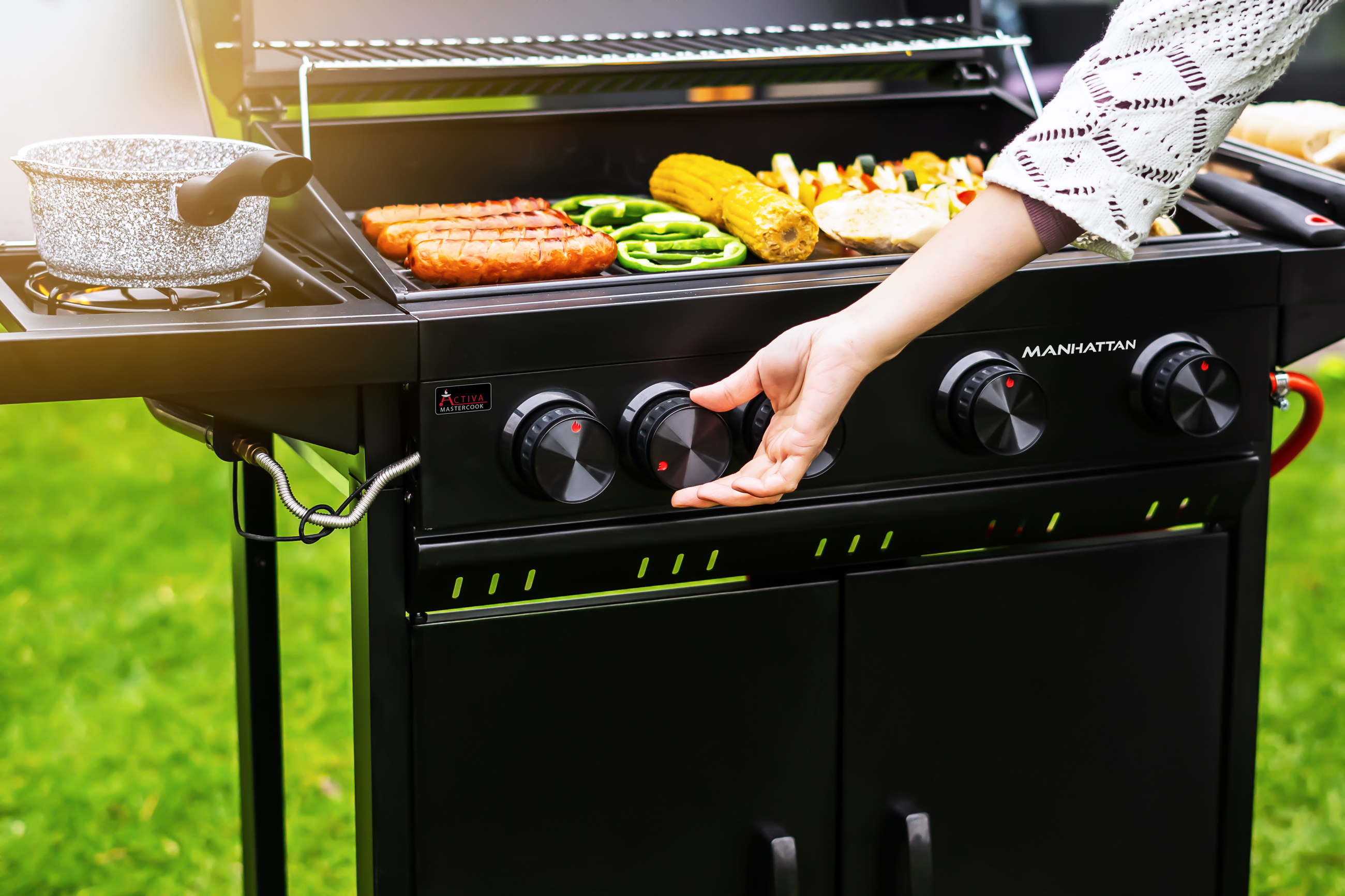 MANHATTAN wyposażony jest w palniki tubowe wykonane z wysokiej jakości stali nierdzewnej, co zapewnia ich długotrwałą wydajność. Każdy palnik posiada indywidualne pokrętło, umożliwiające precyzyjną regulację płomienia, a wbudowany piezo zapalacz błyskawicznie rozpali grilla. Więcej gazu = wyższa temperatura.